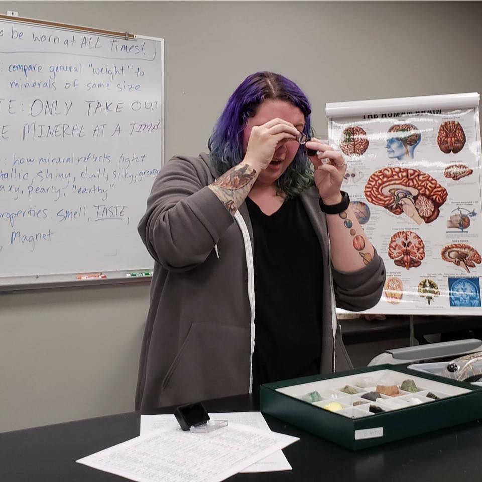 I spent 2015-2020 teaching physical science, physics, environmental geology, and 2D CAD at Arkansas State University – Newport. I also accepted the position of Director of the Student Success Center at University of Arkansas Community College at Batesville, where I ran their tutoring centering for a year before deciding to return to school. It was during this time I realized that my true passion lies in teaching, and my husband and I were experiencing what we in physics call the Two Body Problem; it is indeed a real physical phenomenon but is also given as a label for two married people who are in the same field but one finds a reliable job and the other struggles to find reliable work. Because of this, I decided to quit my job at UACCB and return to school. At this point I had no direction; I knew I still wanted to teach college, but I needed to have experience in a different study area. I started taking undergraduate chemistry and computer science classes during this time.