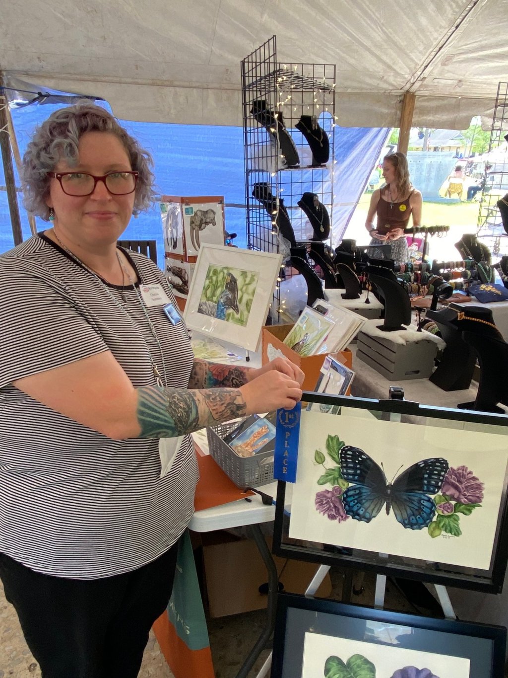 In 2022, I won first place in my tent at the Delta Arts Festival in Newport, AR for my Diana Fritillary and Rose of Sharon watercolor painting (pictured above).