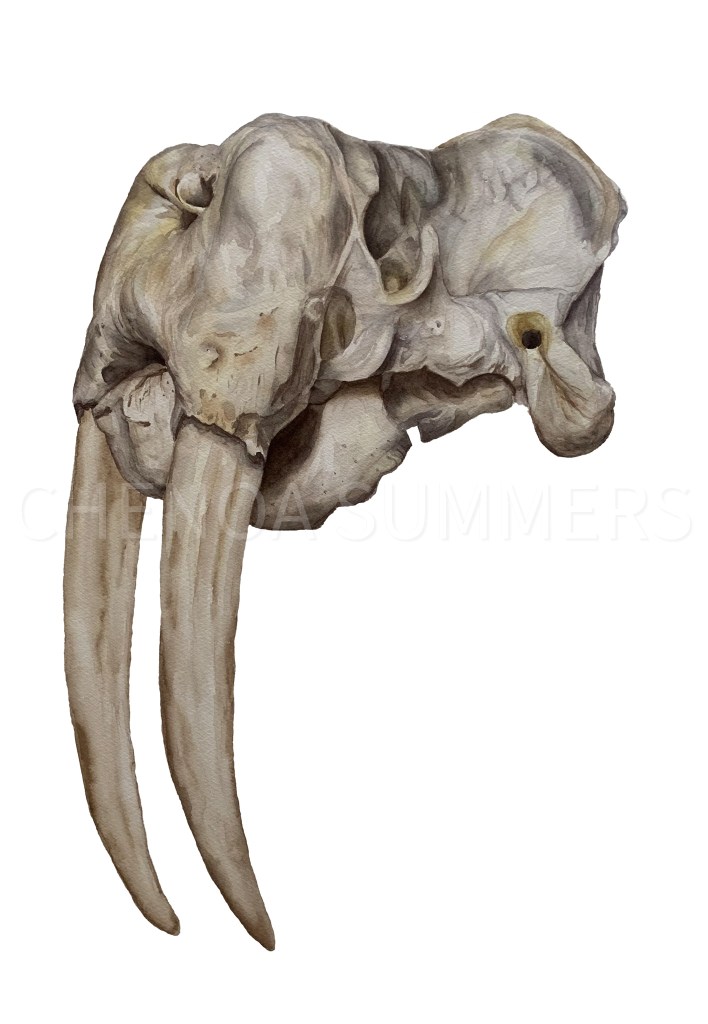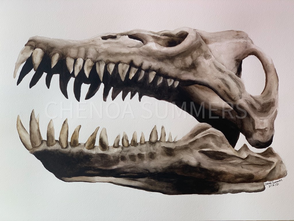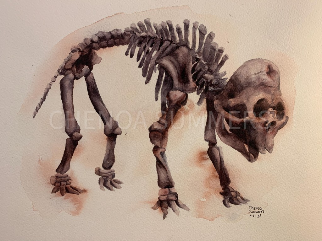 I started watercolor painting in 2020 as a pandemic-project. It stuck with me! I now paint with watercolor, gouache, and dabble some in acrylic. Most of my subjects are from the natural world. I like to paint a lot of extinct animals in skull form, but I also like painting live animals. In reality, I want to document nature from both the past and present to inform us of what to expect for the future with a rapidly changing climate.